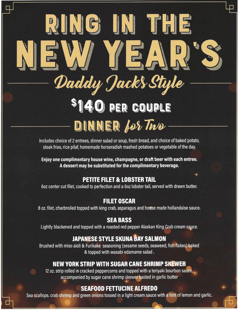 For over 35 years, Daddy Jack’s has served up tantalizing appetizers, salads, pasta dishes, chicken, hand-cut steaks and seafood. Relax with a generous libation and you’ll quickly see why this is Indianapolis’ favorite fine dining spot for food, fun, and friends.